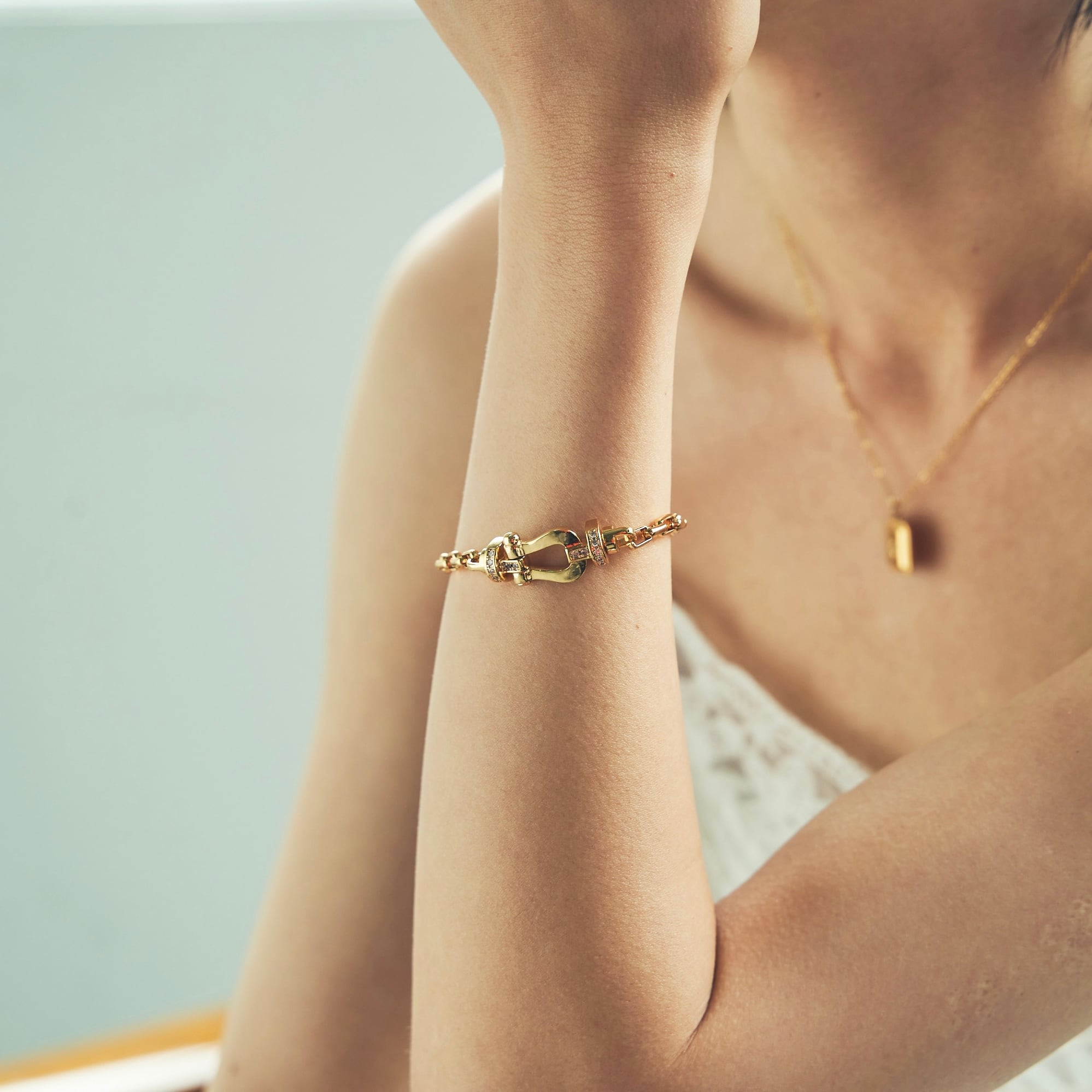 馬蹄をモチーフとしたチェーンブレスレットになります。